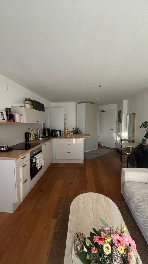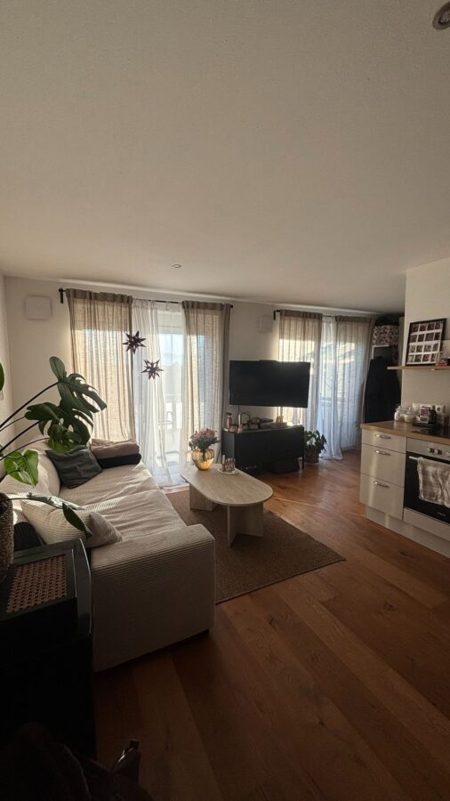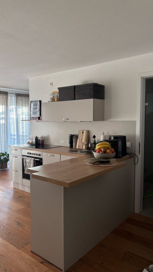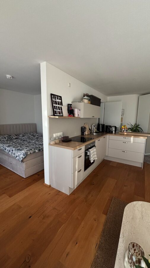 Diese gepflegte 1,5-Zimmer-Wohnung befindet sich im 2. Obergeschoss (mit Lift) eines im Jahr 2019 fertiggestellten Gebäudes. Die Wohnfläche von ca. 45 m² ist für ein Appartement optimal aufgeteilt und bietet einen modernen Wohnkomfort mit abgetrennten Schlafbereich. Die Wohnung verfügt über ein Badezimmer mit Dusche sowie eine Einbauküche. Die großzügige Balkonterrasse lädt zum Verweilen ein. Für zusätzlichen Komfort sorgen ein Personenaufzug, ein Wasch-/Trockenraum mit eigenem WM-Anschluss, sowie ein eigener Kellerraum. Die Böden sind mit Eichen-Parkett und Fliesen (Bad) ausgestattet.